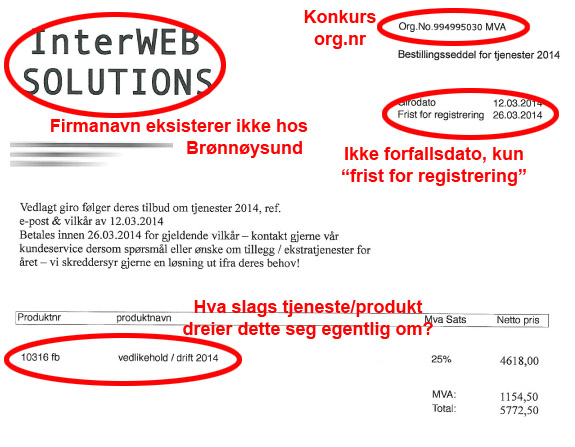 Svindelforsøket kommer ofte i form av en «faktura» pr brev eller en e-post der man blir bedt om å bekrefte firmainformasjon. Ofte er beskrivelser av «produktet» så ullent formulert at det er umulig å forstå hva det faktisk dreier seg om. (mer…)